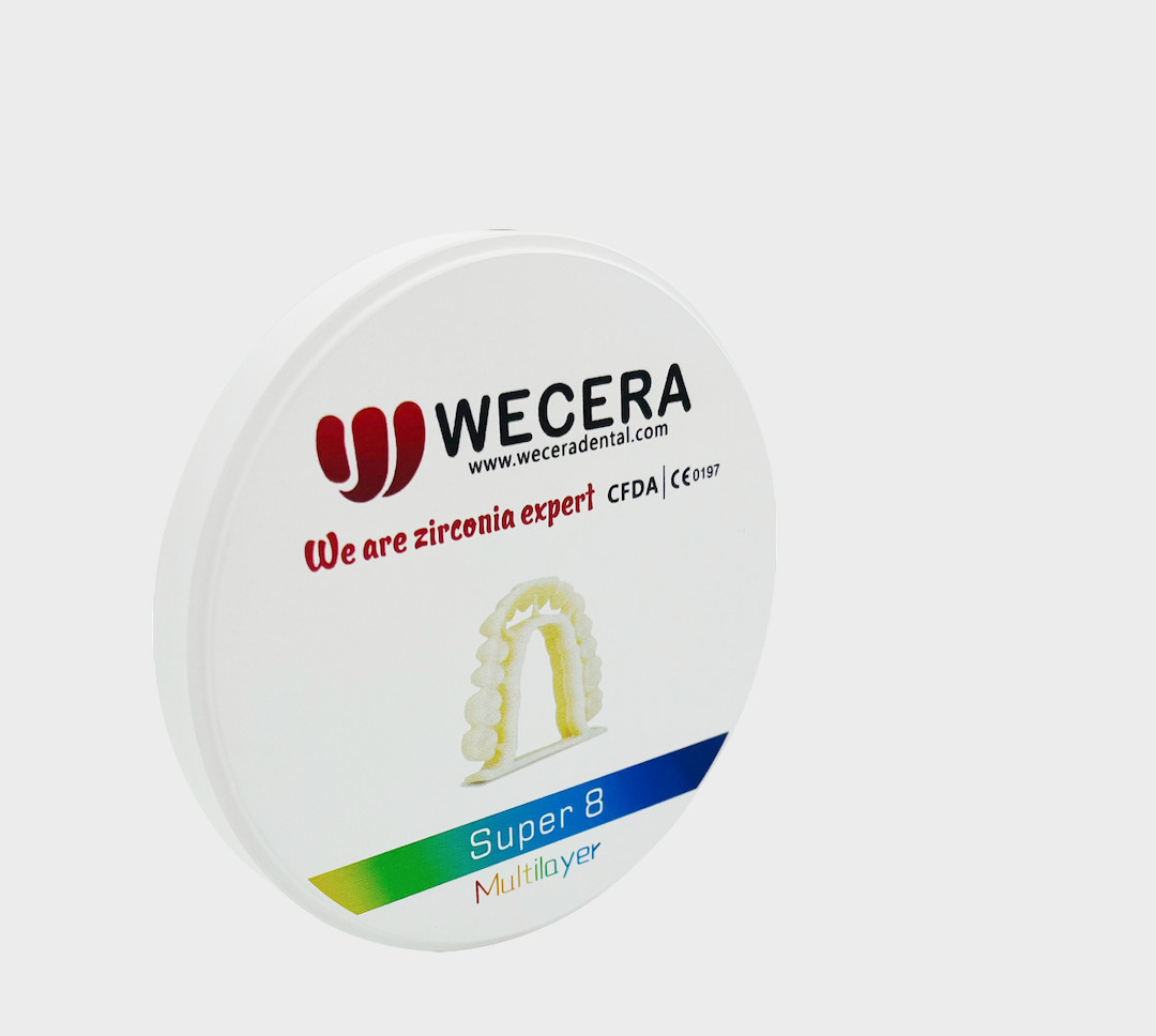 8 katman çok katmanlı zirkonya, daha fazla katmanla, görünüm sorunsuz görünüyor.Bu zirkonya malzemesi sinterleme işleminden sonra meydana gelen herhangi bir deformasyon olmadan 14 birime kadar bir köprü oluşturmayı sağlar.
