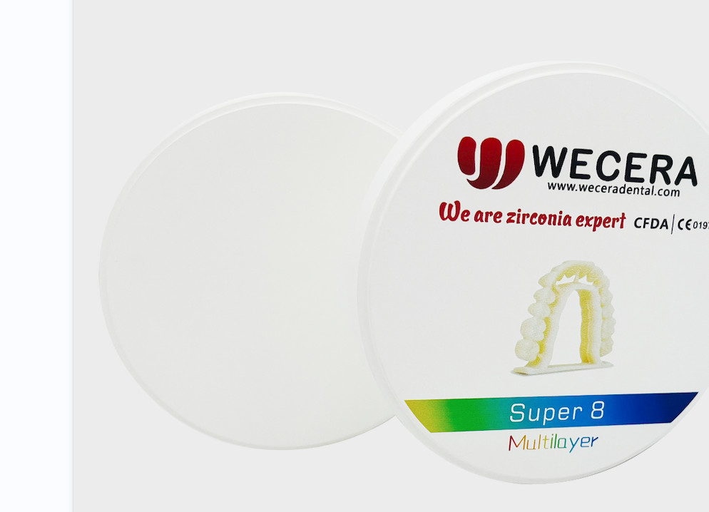 Özetle, Wecera Super 8 3d çok katmanlı zirkonya bloğu, zirkonya diş seramikleri için güvenilir ve yüksek performanslı bir malzeme arayan diş uzmanları için mükemmel bir seçimdir.Sertifikalı kalitesi, önde gelen freze sistemleriyle uyumluluğu ve doğal görünümü, rutin restorasyonlardan karmaşık rehabilitasyona kadar çeşitli diş uygulama durumlarında ve senaryolarında vazgeçilmez hale getirir.
